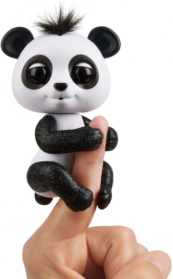 Fingerlings Baby Pandas react to ger shower, movements and touches with blinking eyes, head turns and panda singang.